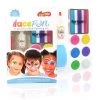 This FaceFun kit features six FAB face paints: white, ink blue, silver, fire red, bright blue, and Alice blue. Each kit has enough product to paint more than 300 faces. Store this kit in a cool, dry place for a shelf life of five to seven years. Also included in this kit: