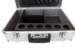 The Silly Farm Airbrush case has 6 custom cut holes to fit your 1 oz or 2 oz bottles, which make sit easy to work right out of the case. There are also extra compartments to hold business cards, extra paint, a mirror and much more.