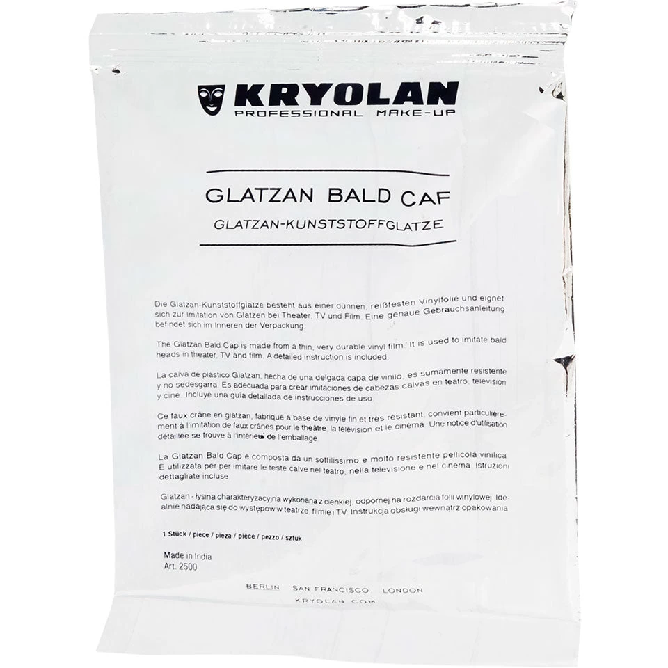Glatzan Bald Cap is a especially thin but tear-resistant plastic bald caps, made from the liquid bald cap material Glatzan. This bald cap is available in 2 sizes small and large. Glatzan Bald Cap is placed onto the model and is cut to fit the head. The edges are then secured with Mastix Spirit Gum, beginning with the forehead, then the nape of the neck, and finally at the temples and at the ears. When the plastic cap sits correctly, the edges can be smoothed out with thickened latex or Eyelash Adhesive, before make-up is applied. Although any make-up can be used, we particularly recommend special greasepaint for rubber items. As final step, Translucent Powder is carefully applied to the make-up.