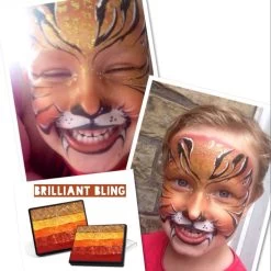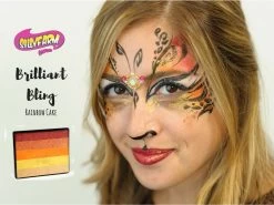 Rainbow cakes are excellent for base work for any design. They are used with a flat brush or sponge to create amazingly blended designs with one stroke. Rainbow Cake color combinations are designed to highlight and low light all with one container. Silly Farm carries over 20 different combinations of rainbow cakes designed to speed up your painting and help you create amazing designs. Rainbow cakes are also ideal for working with Pink Power stencils and Fast Faces kits. Expect 100-500 applications per rainbow cake.