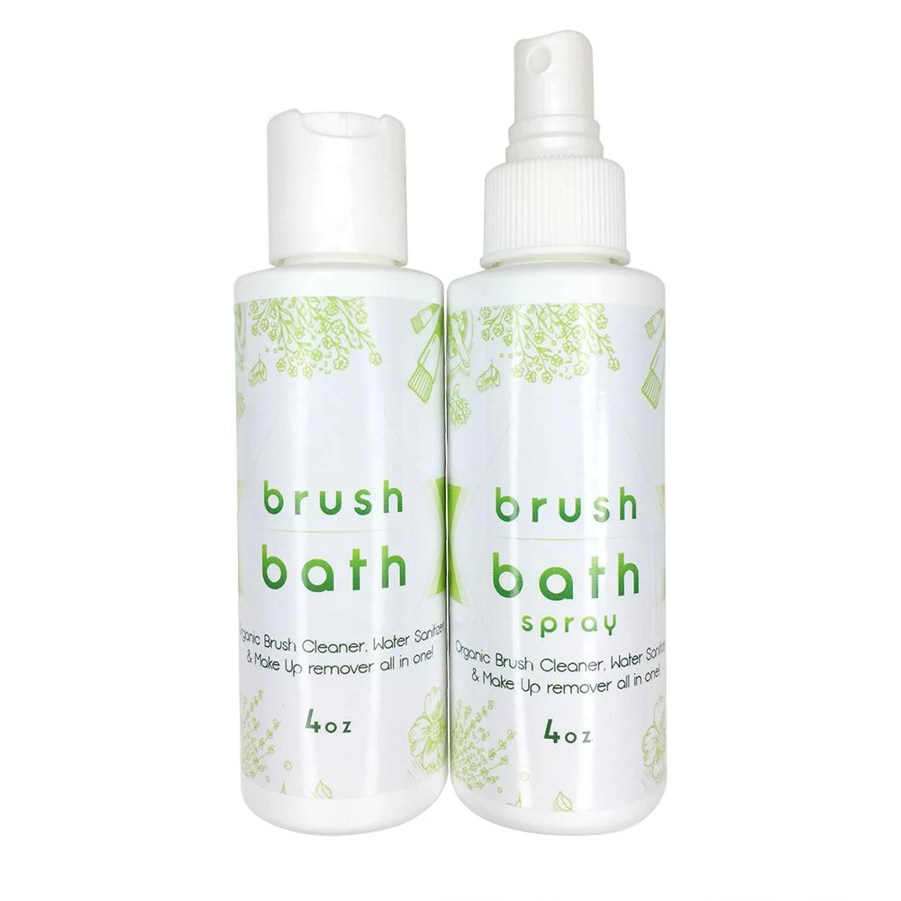 Silly Farm presents Brush Bath the water sanitizer, brush cleaner and make up remover all in one. 100% organic, safe for the face and body, and the best part is that Brush Bath keeps your brushes and sponges clean while you paint. Spray on your brushes in between kids to keep them fresh and clean. Contains no alcohol Paint with confidence and know that you are doing your part to promote cleanliness and hygiene on the job. Set includes one 4oz bottle and 1 spray bottle of brush bath..