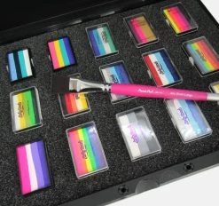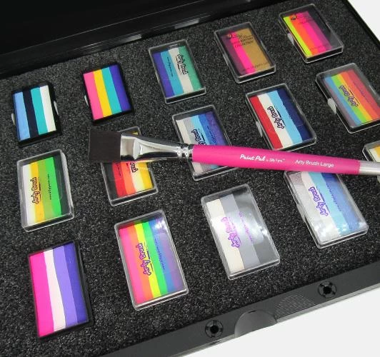 The Pro Arty Cake Build Your Own Palette (BYOP)offers convenience, organization, and lots of color all in one palette. If you are having trouble organizing your arty cakes this is the perfect palette for you. This kit is fully customizable and allows you to choose your favorite arty cake combinations to create a palette full of creativity and inspiration. The BYOP Arty Cake is a great addition to any painter’s kit. This kit will paint over 600 faces. There’s never been a better time to add some color to your life!