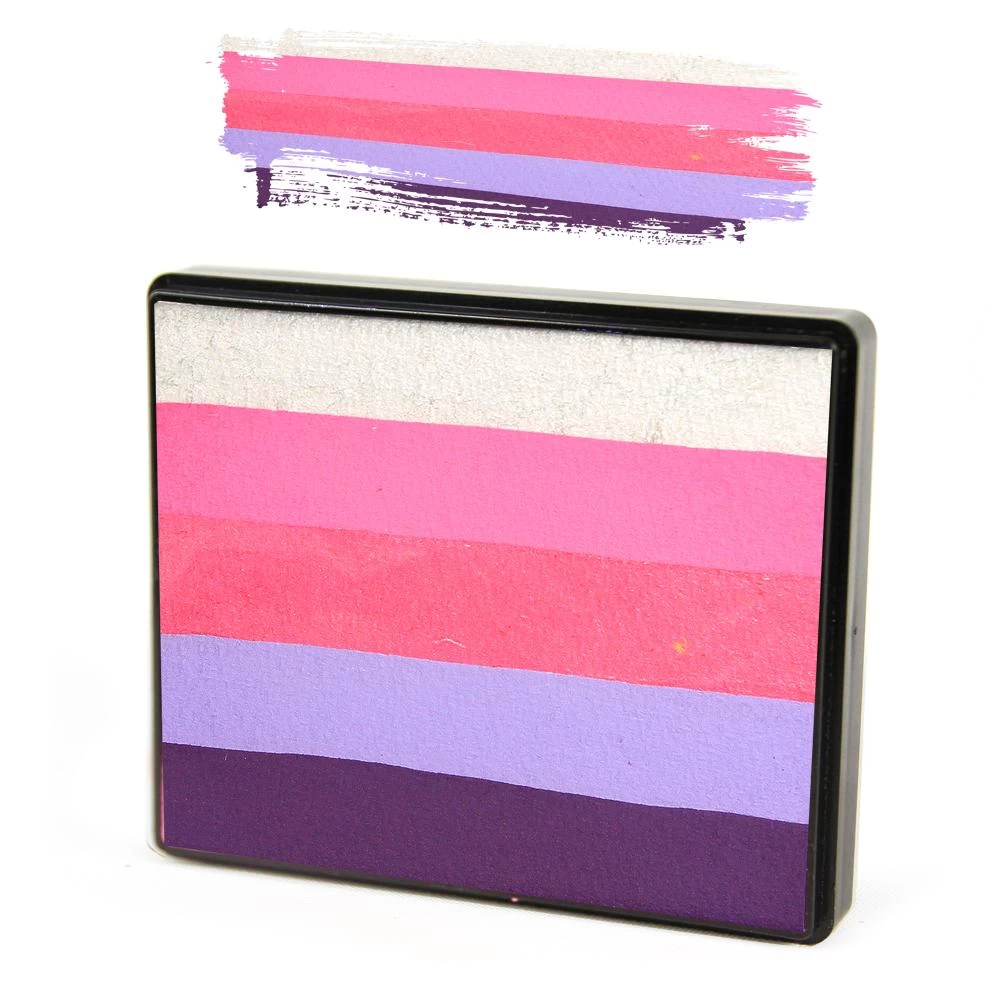 Rainbow cakes are excellent for base work for any design. They are used with a flat brush or sponge to create amazingly blended designs with one stroke. Rainbow Cake color combinations are designed to highlight and low light all with one container. Silly Farm carries over 20 different combinations of rainbow cakes designed to speed up your painting and help you create amazing designs. Rainbow cakes are also ideal for working with Pink Power stencils and Fast Faces kits. Expect 100-500 applications per rainbow cake.
