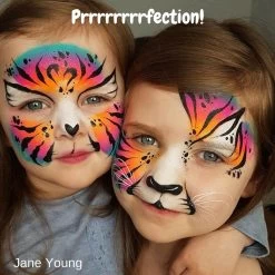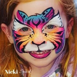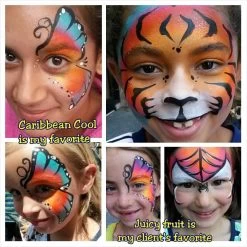 Rainbow cakes are excellent for base work for any design. They are used with a flat brush or sponge to create amazingly blended designs with one stroke. Rainbow Cake color combinations are designed to highlight and low light all with one container. Silly Farm carries over 20 different combinations of rainbow cakes designed to speed up your painting and help you create amazing designs. Rainbow cakes are also ideal for working with Pink Power stencils and Fast Faces kits. Expect 100-500 applications per rainbow cake.