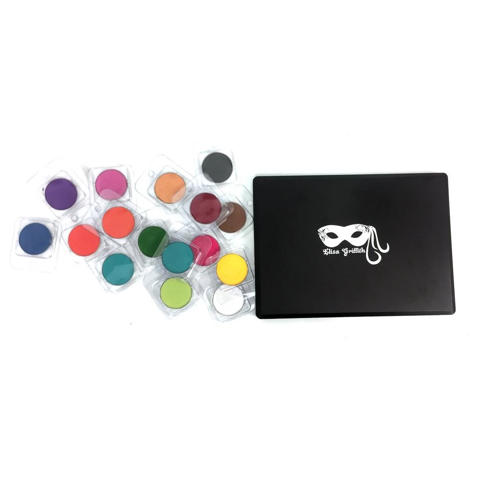 NEW and Improved Elisa Griffith Powder palette. When you want bold color and a versatile palette this is the palette for you. The new and improved Magnetic tray allows you to add, replace, and remove colors as needed. It makes it easy to transport and practical for lots of high volume usage.