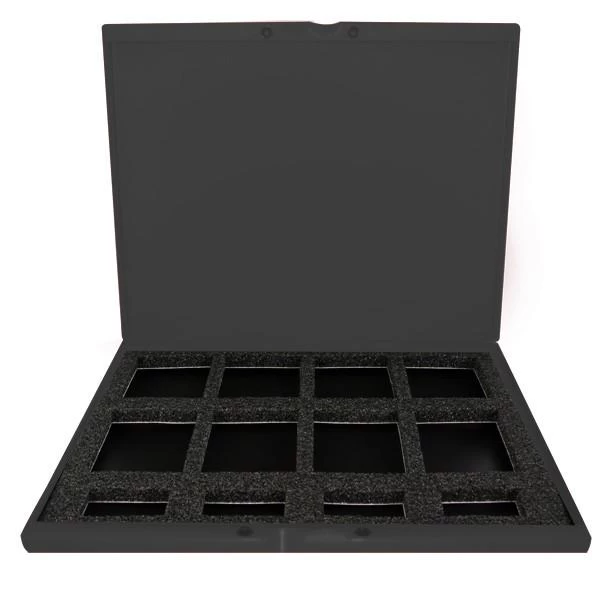 This lightweight custom built case is the perfect tool to carry anywhere while providing a professional organized, sleek look. The case includes a foam insert that holds (8) Rainbow cakes and (4) Arty cakes. This case looks like the design of a laptop measuring at 12 ΒΎ inches wide-10 ΒΌ inches long and 1 ΒΌ high. This case is a guaranteed necessity if you are looking for convenience.