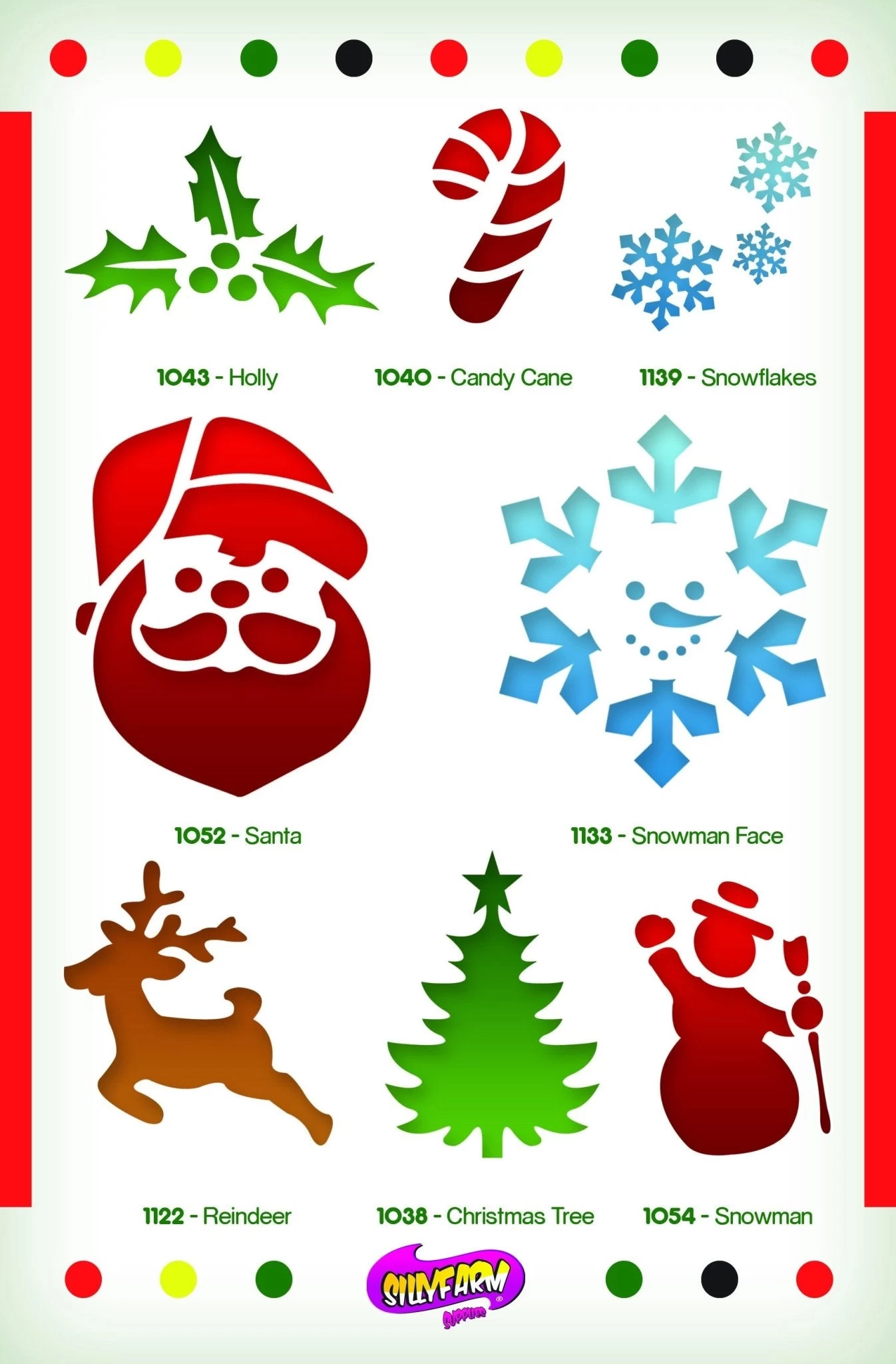 The wonderful Pink Power stencils were created by Silly Farm. These stencils are very versatile as you can use them for face painting with our exclusive Rainbow Cakes and use them as airbrush stencils as well. Contains 8 individual holiday-themed stencils.
