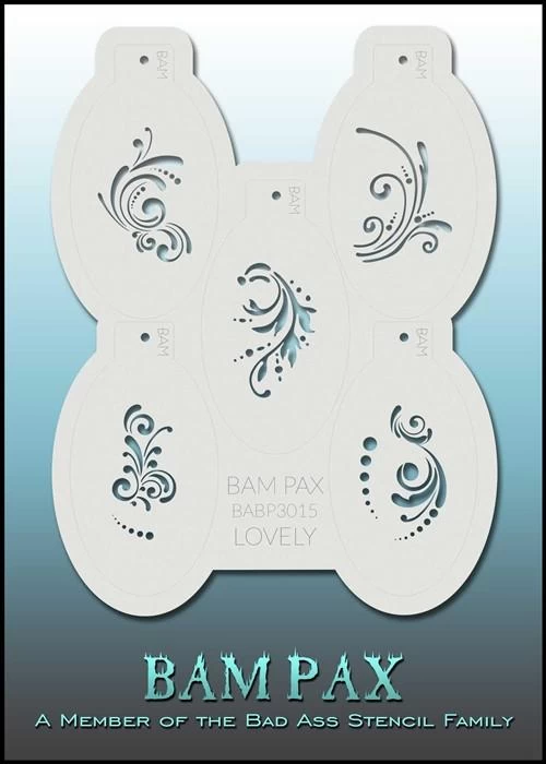 Each stencil sheet features several relative design elements, all laid out on an 4x3in Mylar sheet that can be reused for a lifetime. The stencil design sheets are easy to use and feature textured edges that allow you to create multiple designs with just one sheet. Because Bam Pax stencils are made of high quality Mylar they come clean easily and are flexible enough to use all over the body.
