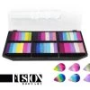 Paradise Makeup AQ™ Neon UV Glow! Paradise Neon’s have the same amazing qualities of our #1 selling Paradise Makeup AQ™ plus it glows bright under blacklight. In daylight this palette has seven bold, bright neon shades and one shade that paints onto the skin clear, under UV lights all eight shades illuminate.