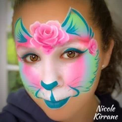 Rainbow cakes are excellent for base work for any design. They are used with a flat brush or sponge to create amazingly blended designs with one stroke. Rainbow Cake color combinations are designed to highlight and low light all with one container. Silly Farm carries over 20 different combinations of rainbow cakes designed to speed up your painting and help you create amazing designs. Rainbow cakes are also ideal for working with Pink Power stencils and Fast Faces kits. Expect 100-500 applications per rainbow cake.