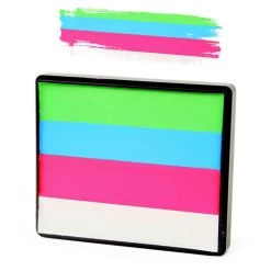 Rainbow cakes are excellent for base work for any design. They are used with a flat brush or sponge to create amazingly blended designs with one stroke. Rainbow Cake color combinations are designed to highlight and low light all with one container. Silly Farm carries over 20 different combinations of rainbow cakes designed to speed up your painting and help you create amazing designs. Rainbow cakes are also ideal for working with Pink Power stencils and Fast Faces kits. Expect 100-500 applications per rainbow cake.