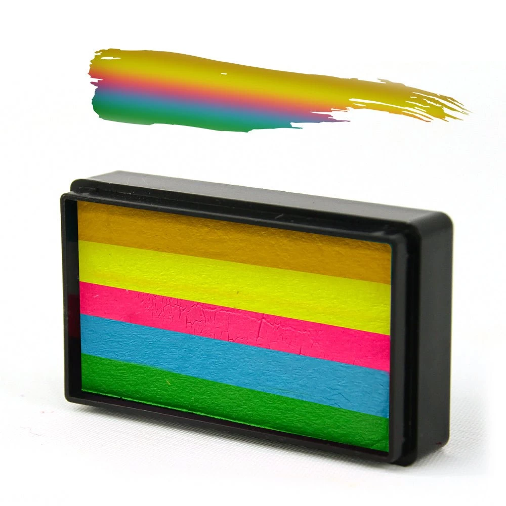 Arty Brush and Rainbow Cakes are the #1 product in Face and Body Painting. The Arty Brush Cakes are miniature rainbow cakes that are used with a flat brush or sponge to create amazingly blended designs with one stroke. Arty Brush color combinations are designed to highlight and low light all with one container. Silly Farm exclusive Arty Brush Cakes are available in over 30 color combinations for every theme, holiday and design capability.