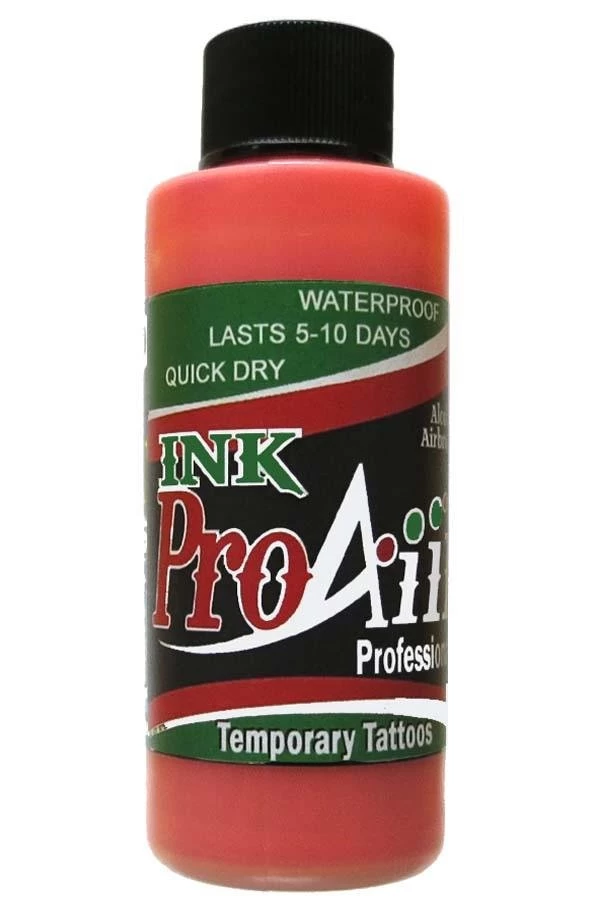 ProAiirΒ Ink is a temporary airbrush tattoo ink designed for quick application. ProAiir is smooth flowing, long lasting, and durable! ProAiir Temporary Tattoo Ink can last up to 14 days when applied correctly! Available in 2 or 4 oz sizes, ProAir is manufactured in the United States and uses FDA compliant pigments.