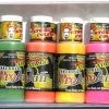 Here is why Atomic is different by Dutch!~ Basically the neons, though incredible, are still translucent to a degree. While the primaries are a lot more opaque. I wanted the best of both worlds. Colors that would go on opaque but have that neon brilliance in natural light applications. And as the picture shows, they still fluoresce in blacklight and POP in the sun light!.I used this approach to amp up the rest of the primary and secondary colors with some UV punch. The “Atomic” colors dry bright and vibrant with one coat!