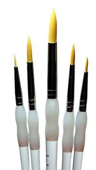The Soft Grip brush set features 5 varying sizes of excellent round brushes. The Soft grip brush series are ideal for face painting because of the soft grip handle and the smooth taklon bristles hold their point and do not separate like other brands.