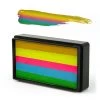 Rainbow cakes are excellent for base work for any design. They are used with a flat brush or sponge to create amazingly blended designs with one stroke. Rainbow Cake color combinations are designed to highlight and low light all with one container. Silly Farm carries over 20 different combinations of rainbow cakes designed to speed up your painting and help you create amazing designs. Rainbow cakes are also ideal for working with Pink Power stencils and Fast Faces kits. Expect 100-500 applications per rainbow cake.
