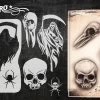 Each Tattoo Pro design sheet comes with an 8″x10″ durable 7.5ml solvent-proof mylar sheet with positive and negative shapes, and packaging that can be used as a folder for your stencil pieces or as a DIY custom tattoo design display poster. Also included is an additional 8.5″x11″ pre-printed design display poster featuring designs created with this kit.