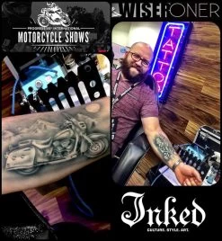 This design sheet features 1 large size motorcycle stencil, 1 medium sized motorcycle stencil, 1 small engine stencil and other elements that can be used to make realistic airbrush tattoos.ย Designed by WiserTattoo Pro Stencil kits contain both positive and negative stencil design shapes that are used to create Black & Grey, or full blown color tattoos! Once you start mixing and matching stencils from various kits, you’ll be able to come up with endless designs ideas for quick and easy tattoos!