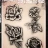 The Roses & Scrolls Tattoo Pro Stencil set features 2 sizes full bloom rose stencils, 2 sizes rose bud stencils, 2 different types of scroll banner stencils and other elements that can be used to make realistic airbrush tattoos.